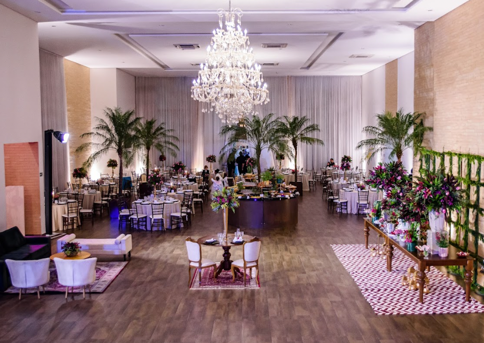 Com requinte e ainda assim um clima acolhedor, seu projeto une detalhes majestosos com um jardim e área externa que o torna versátil e disponível para eventos noturnos e diurnos.